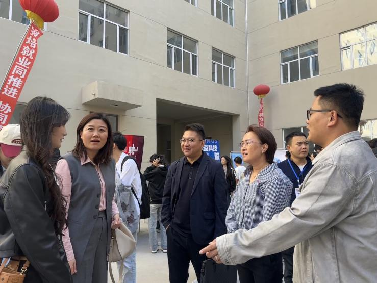 9月17日,学院党委书记刘佳丽、学院党委副书记段丽莉、系主任、班主任、部分专业教师和辅导员来到学校2026届毕业生秋季大型双选会现场,为毕业生高质量就业保驾护航。他们热切关心学生,与毕业生深入交流,细致询问求职进度、职业锚点及困惑挑战。刘佳丽与企业代表展开交流,就人才培养与校企合作展开讨论,为毕业生就业工作开拓渠道。