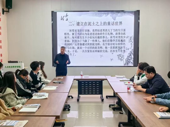 本次中文文化节共设置三场活动。10月14日,邀请著名儿童文学作家、诗人、大庆市儿童文学协会名誉主席王如老师,带来题为《童话世界中的历史真实——我和我的文学故事》的精彩讲座。王如老师将其新近出版的力作《土窝窝学校》作为特别礼物赠予在场同学,并一一签名留念。这场充满温情与思想深度的读书分享会和签字赠书活动,是学院中文文化节的开端。