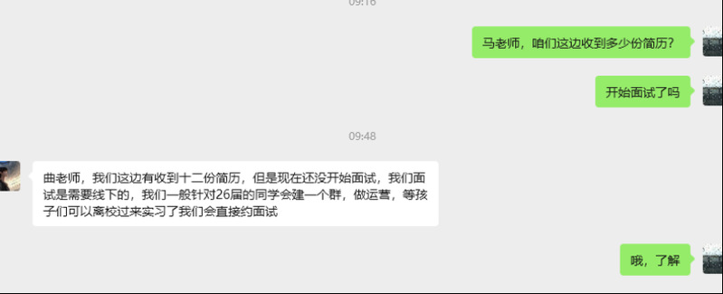 两场宣讲会学生投递简历40+,企业根据安排依次进行面试。深化了我校与优质企业的合作联结。