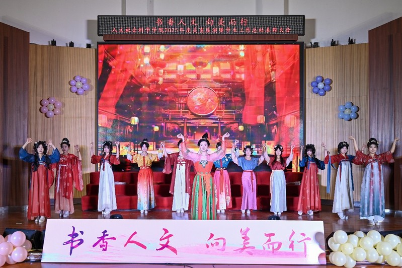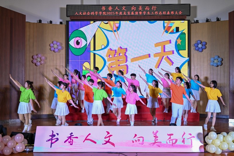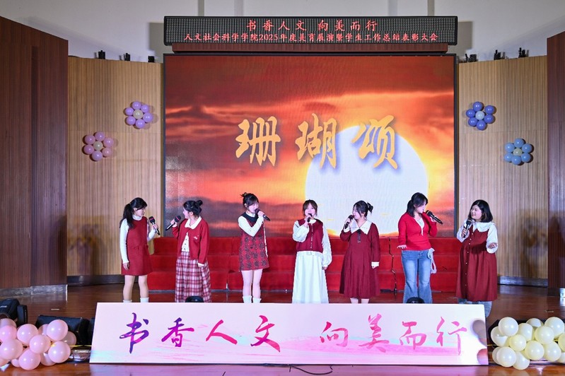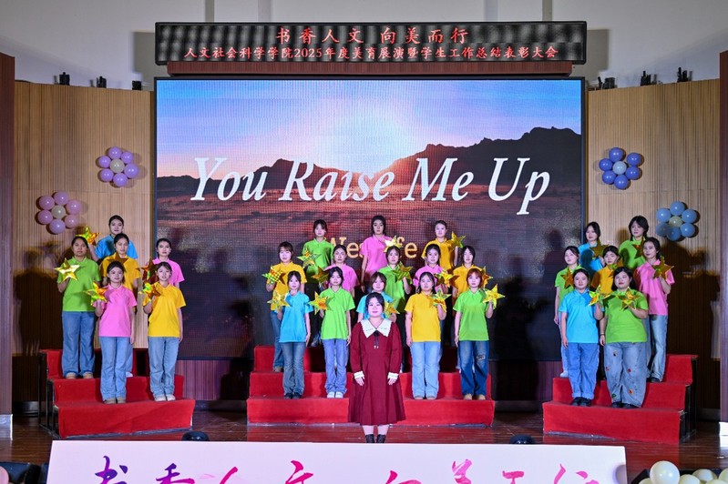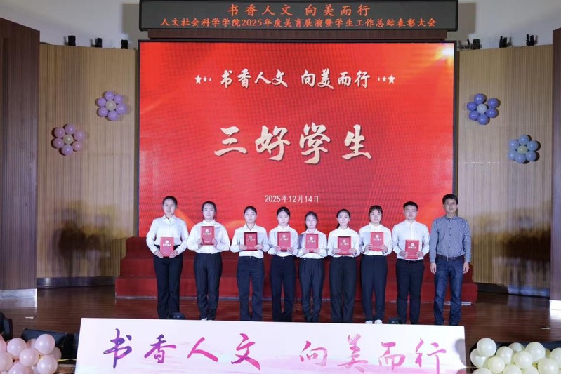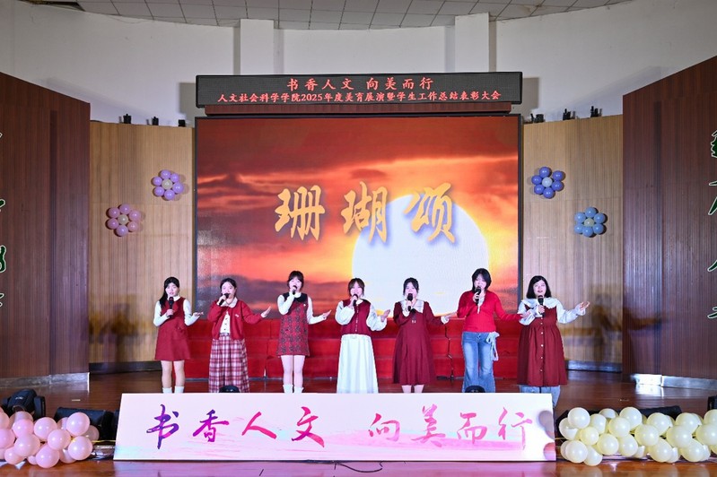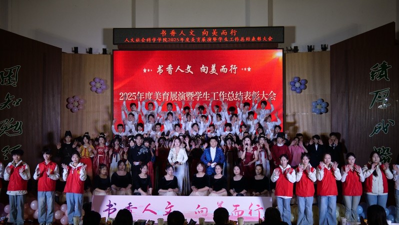 此次美育展演暨学生工作总结表彰大会,既是对人文社会科学学院过去一年育人工作的全面总结,更是对学院美育品牌的凝练和打造。从经典旋律中赓续文化根脉,在舞台展演中践行审美表达,于榜样引领中塑造高尚品格,美育已深度融入学院育人全过程。未来,在校第十六党代会精神的指引下,人文社会科学学院将继续秉持“以文化人、以美育人”的理念,让“向美而行”的信念深植学子心中,让人文精神浸润学子成长之路,师生携手并肩,共同书写学院发展的崭新篇章。
