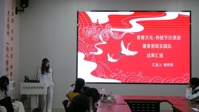 在成果分享环节,各团队聚焦不同领域,用青春汗水书写了多彩的实践篇章:“知途”管道守护宣传队走进中学开展宣讲,系统普及管道安全知识,团队在协作中提升了组织与沟通能力,更深刻体悟到守护公共安全设施的青春使命;“墨香剪纸”美育实践队深入社区,联动居民写春联、剪窗花,并为独居老人送去节日装饰与温馨陪伴,他们将社会工作“以人为本”的专业理念融入服务,在代际互动中助力社区文化传承;“岁华新声”文化调研队奔赴乡村,通过深度访谈与实地走访,深入挖掘东北特色民俗,对比研究城乡节日文化传承差异,坚定了以青春力量守护文化根脉的决心。“童守安·管道侠”志愿服务队跨越多省,开展了十余场针对青少年的管道保护宣传活动,团队创新采用游戏化教学与实操演练,有效提升了近四百名青少年的安全意识,活动获得多级推广;基层服务实践个人杨梓渝同学在“返家乡”实践中,于家乡镇政府党建办承担档案整理、选举服务等工作,以专业知识赋能基层治理,在服务中深化认知、锤炼本领;美育实践团则在分享中深情阐述:“美育是一场双向奔赴。”他们以知识传递与环境改造为载体,践行美育理念,深刻体会到美育不仅是技能传授,更是人文关怀的温暖传递;“星沃繁星”北大荒精神寻访团以溯源北大荒精神为主题,走访垦区、访谈三代“北大荒人”,记录珍贵口述历。他们从垦区变迁中感悟精神内核,立志成为这份伟大精神的记录者、传播者与践行者。