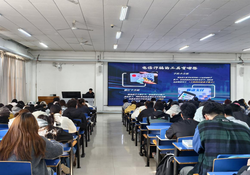 讲座中,周警官结合近年来高校高发的诈骗案例,尤其是针对大学生群体的刷单返利、冒充客服退款、网络贷款等典型诈骗场景,深入剖析了各类诈骗的作案手法与套路。他围绕校园生活、网络社交、网购消费等高频场景,详细讲解了诈骗分子的常用话术、识别技巧与防范要点,从陌生链接不点等维度,提醒师生时刻保持警惕,识破诈骗陷阱。